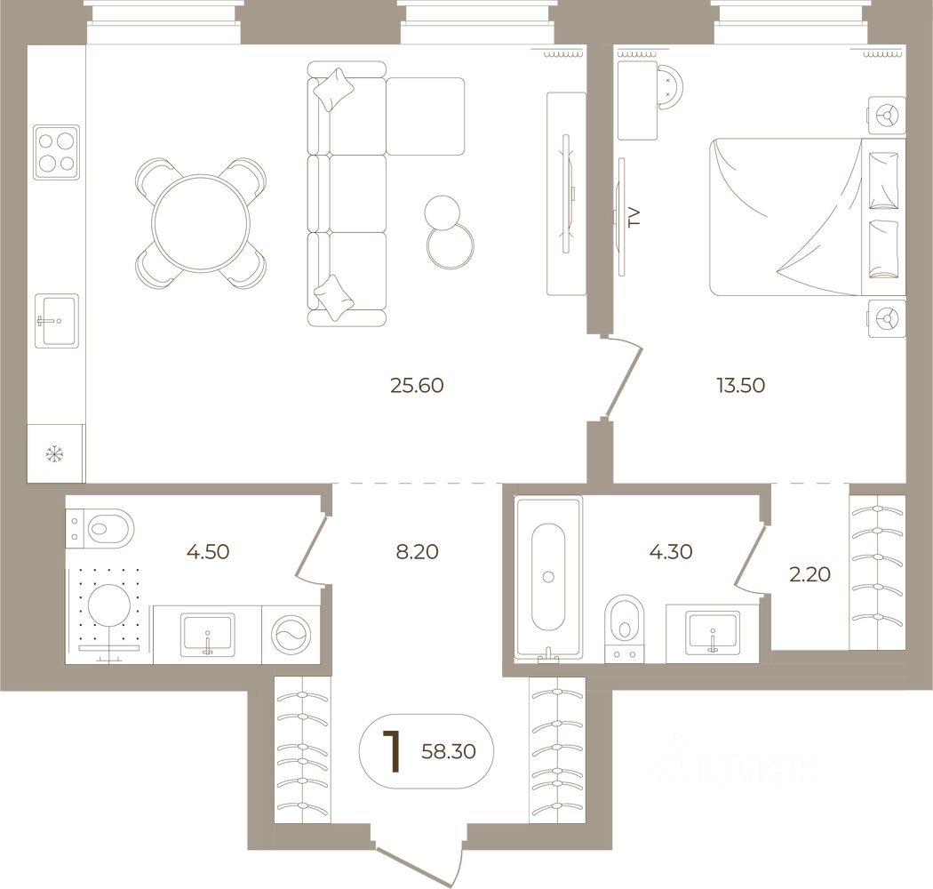 Продаётся 1-комнатная квартира в строящемся доме (Мира,70 (Корпус 1)), срок сдачи: III-кв. 2028, общей площадью 58.3 кв.м., на 2 этаже. Здесь стены - это не границы, а связующая нить времен.