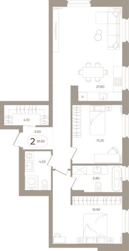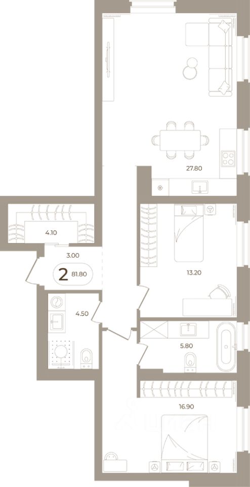 Продаётся 2-комнатная квартира в строящемся доме (Мира,70 (Корпус 1)), срок сдачи: III-кв. 2028, общей площадью 81.8 кв.м., на 2 этаже. Здесь стены - это не границы, а связующая нить времен.