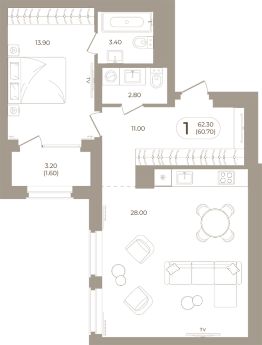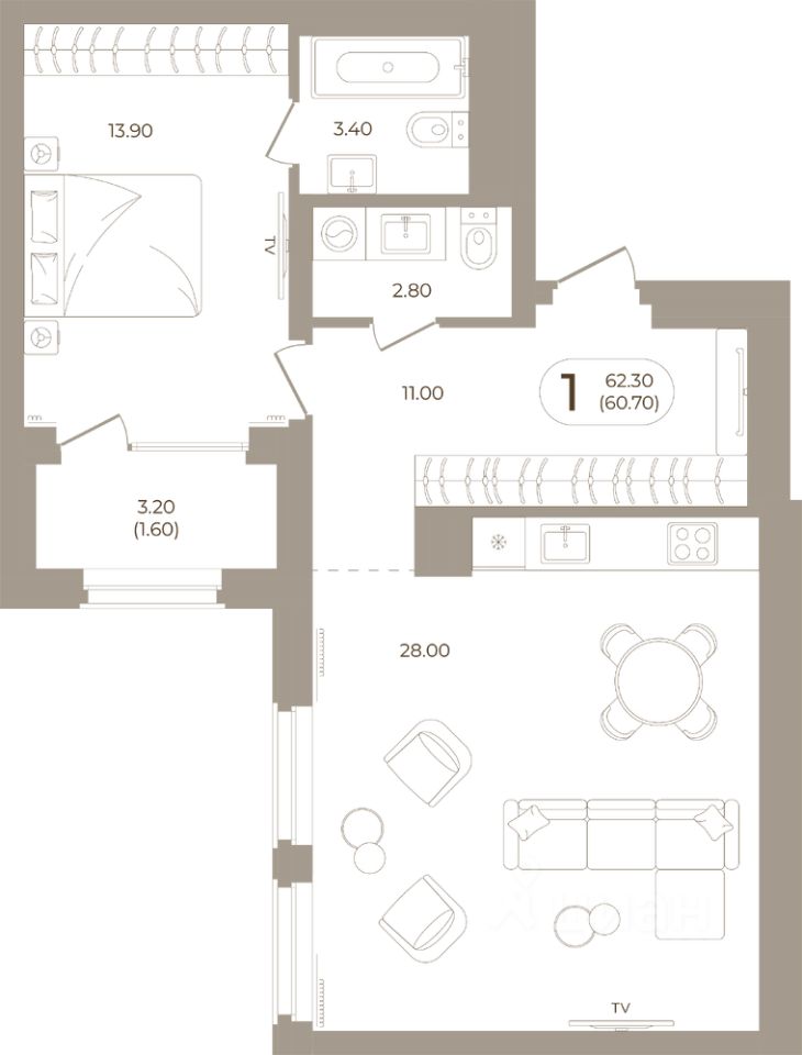 Продаётся 1-комнатная квартира в строящемся доме (Мира,70 (Корпус 1)), срок сдачи: III-кв. 2028, общей площадью 60.7 кв.м., на 4 этаже. Здесь стены - это не границы, а связующая нить времен.