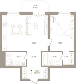 Продаётся 1-комнатная квартира в строящемся доме (Мира,70 (Корпус 1)), срок сдачи: III-кв. 2028, общей площадью 59.5 кв.м., на 6 этаже. Здесь стены - это не границы, а связующая нить времен.