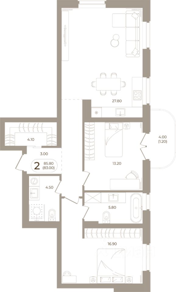 Продаётся 2-комнатная квартира в строящемся доме (Мира,70 (Корпус 1)), срок сдачи: III-кв. 2028, общей площадью 83 кв.м., на 6 этаже. Здесь стены - это не границы, а связующая нить времен.