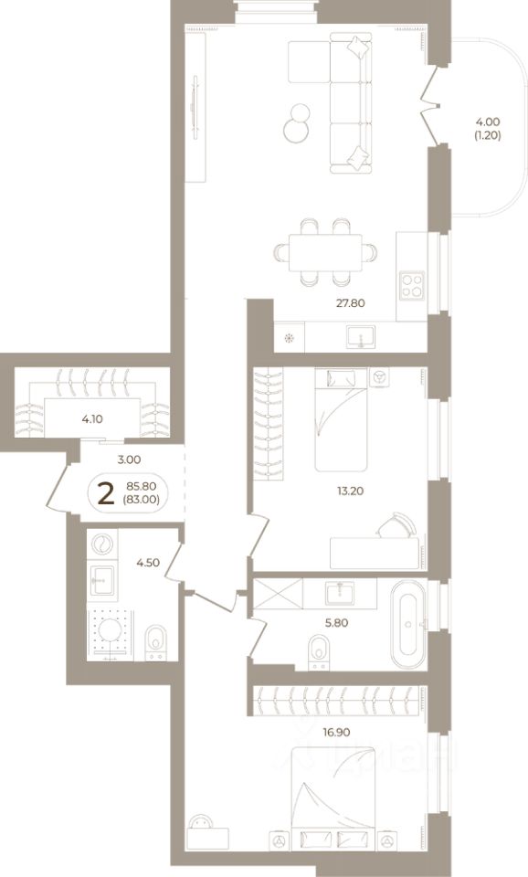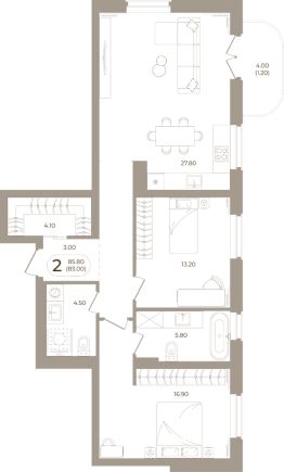 Продаётся 2-комнатная квартира в строящемся доме (Мира,70 (Корпус 1)), срок сдачи: III-кв. 2028, общей площадью 83 кв.м., на 7 этаже. Здесь стены - это не границы, а связующая нить времен.