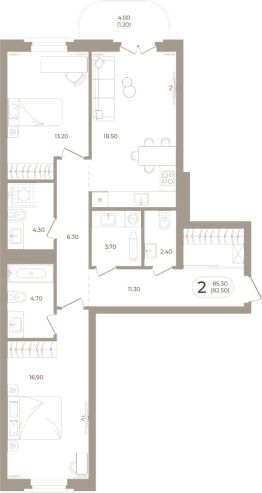 Продаётся 2-комнатная квартира в строящемся доме (Мира,70 (Корпус 1)), срок сдачи: III-кв. 2028, общей площадью 82.5 кв.м., на 8 этаже. Здесь стены - это не границы, а связующая нить времен.