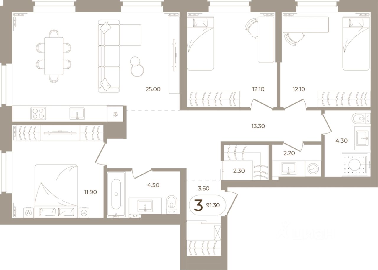 Продаётся 3-комнатная квартира в строящемся доме (Мира,70 (Корпус 1)), срок сдачи: III-кв. 2028, общей площадью 91.3 кв.м., на 2 этаже. Здесь стены - это не границы, а связующая нить времен.