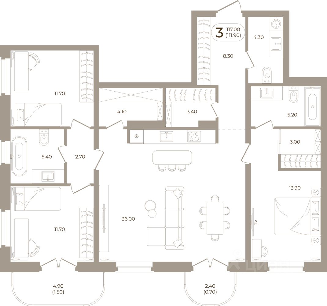 Продаётся 3-комнатная квартира в строящемся доме (Мира,70 (Корпус 1)), срок сдачи: III-кв. 2028, общей площадью 111.9 кв.м., на 4 этаже. Здесь стены - это не границы, а связующая нить времен.
