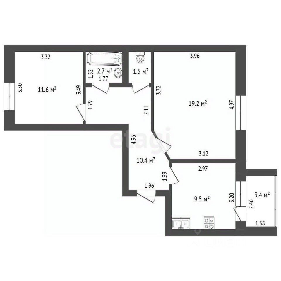 54,9 м²
