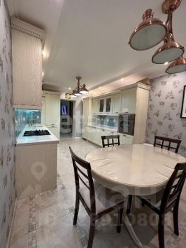 Удобная планировка включает светлую кухню 18 кв. м, три комнаты и современный совмещенный санузел. Лоджия оборудована под рабочий кабинет. Вся техника остается: посудомоечная машина Siemens, варочная панель и духовой шкаф Smeg, встроенный холодильник и морозильник Bosch, стиральная машина.