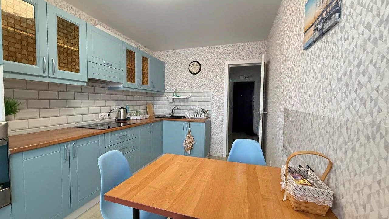 Продается 1 комнатная квартира площадью 40 кв.м. В квартире после продажи остается вся мебель и техника ! Все в идеальном состоянии . Просторная кухня площадью 10 м оформлена в светлых тонах, оснащена всей необходимой техникой, включая холодильник, микроволновку и духовой шкаф. В зале установлен стильный угловой диван и функциональный шкаф. Из окон открывается вид на улицу, что обеспечивает хорошее естественное освещение.В квартире совмещенный санузел с качественной отделкой и современной сантехникой. Лоджия застеклена и утеплена, идеально подходит для отдыха или хранения вещей. Дом построен в 2020 году, кирпичный, что гарантирует хорошую тепло- и звукоизоляцию.Во дворе оборудована детская и спортивная площадки, а также предусмотрена открытая парковка. По документам 1 взрослый собственник без долгов и обременений. Никто не проживает готовы передать ключи сразу после полного расчета !