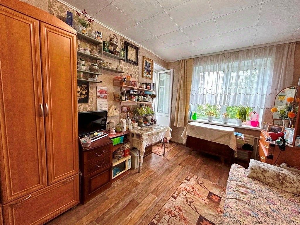 Комната в отличном состоянии, сделан ремонт. Окно-стеклопакет, балкон застеклен, на полу линолеум. Комната очень уютная, теплая, светлая, окна во двор. Мебель остается по договоренности.