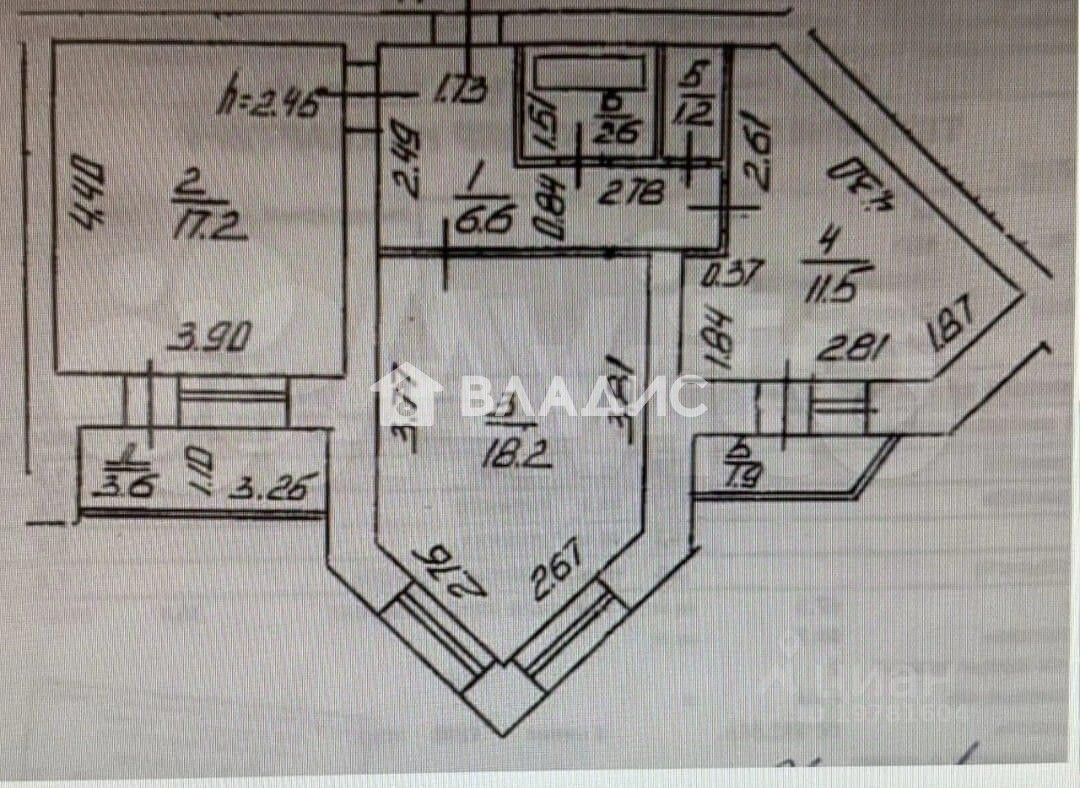 Квартира расположена на 4 этаже 9-этажного дома, построенного в 1995 году. Общая площадь составляет 59,7 кв. м, из которых 35,4 кв. м — жилая площадь. Высота потолков 2,6 м создаёт ощущение простора и свободы.