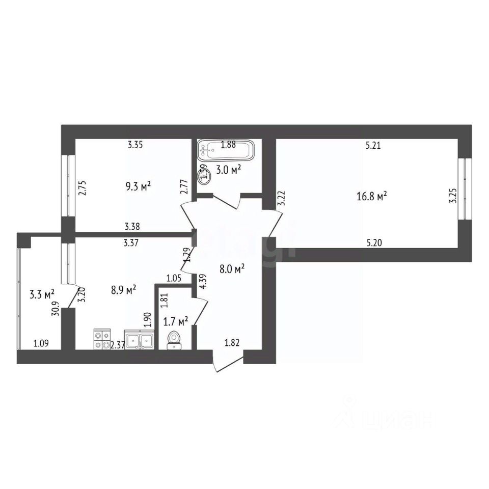 8,9 м²