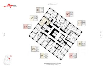 Литер 1, Секция 1. 10-й этаж 23- этажного жилого дома