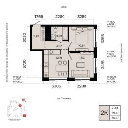 Общая площадь 46.57кв.м.;