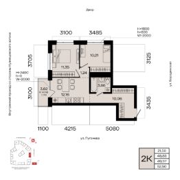 Общая площадь 49.97кв.м.;