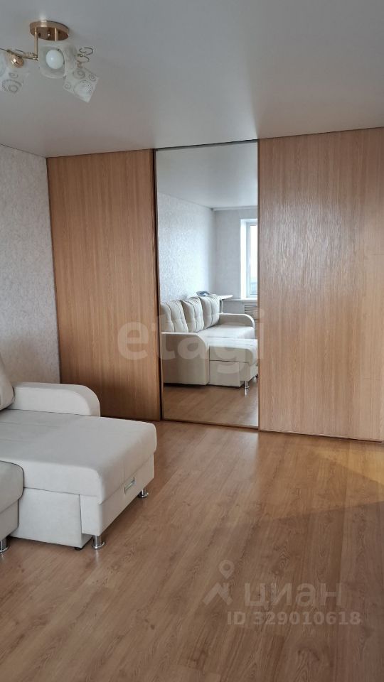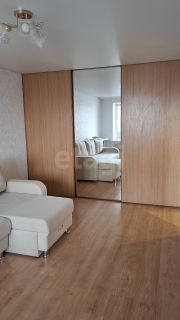 Современный ремонт: по всей квартире качественный ламинат. В зале — натяжной потолок и встроенный шкаф-купе на всю стену (очень вместительный). На кухне и в прихожей — аккуратный навесной потолок. Балкон расширенный, пластиковые рамы — можно использовать как дополнительное пространство.