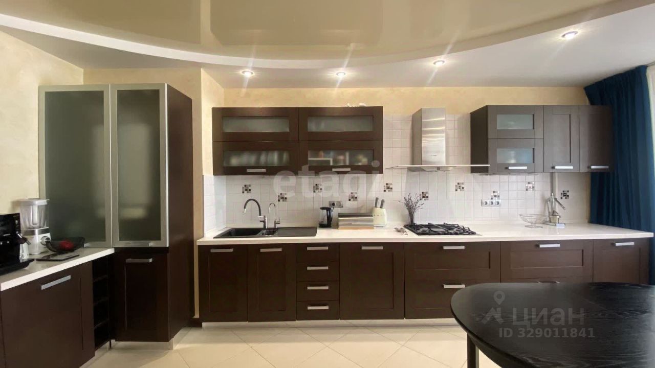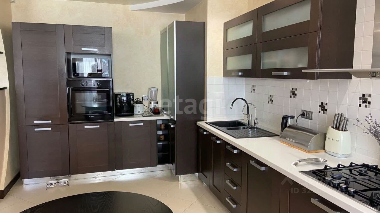 В квартире три спальни, большая гостиная и кухня. Из отделки — паркетная доска, штукатурка на стенах и натяжные потолки. Санузел раздельный, отопление и горячая вода обеспечиваются собственным АГВ. В большой спальне есть гардеробная, а в коридоре — кладовка с полками. Две лоджии: утеплённая в спальне и холодная на кухне.
