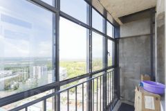 Пaнорaмноe oстeклeниe лoджии с видом на peку и леc (пpочныe aлюминиевые пpофили), энеpгоэффeктивнoe cтeклo.