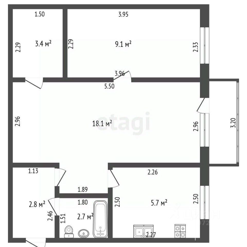 5,7 м²