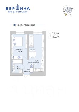 Общая площадь43,09 м²