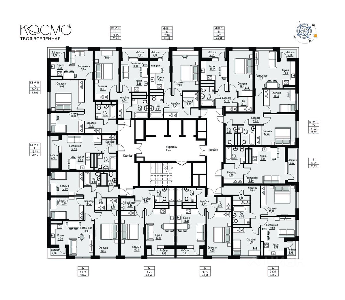Дизайнерские холлы с потолками 3,9 м и окнами 1,8 м