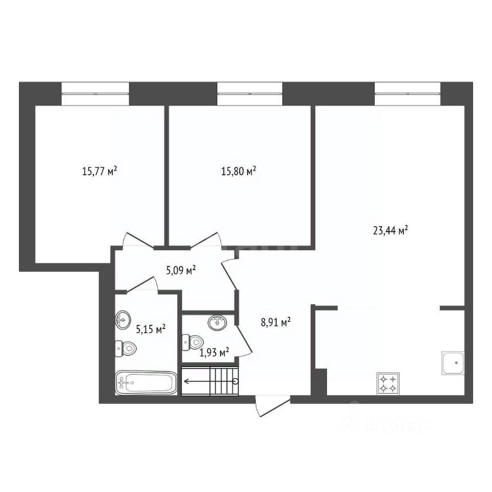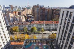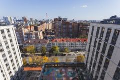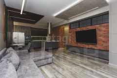 Четырехкомнатная квартира площадью 131,0 кв. м с дополнительными террасой и лоджией, что увеличивает полезное пространство до 191 кв. м, расположена в жилом комплексе "Аристократ" на улице Ленина, 75 в центре Уфы.