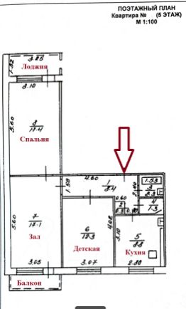Планировка классическая Квартира просторная! Площадь общая 67,9 кв.м.+лоджия + балкон: при входе прямоугольная прихожая 8,4 кв.м., слева совмещенные ванна и туалет 4 кв.м., прямо Большая Кухня 8,8 кв.м., также прямо Отдельная комната (детская) 12,3 кв.м., далее комната (зал) 17,1 кв.м. с выходом на Балкон 2,4 кв.м. и напротив комната (спальня) 17,4 кв.м. с ввыходом на Лоджию 4,6 кв.м. Окна из Кухни, Детской и Зала смотрят во Двор на Юго - Восток, окна из Спальни на Северо - Запад в направлении Российская.