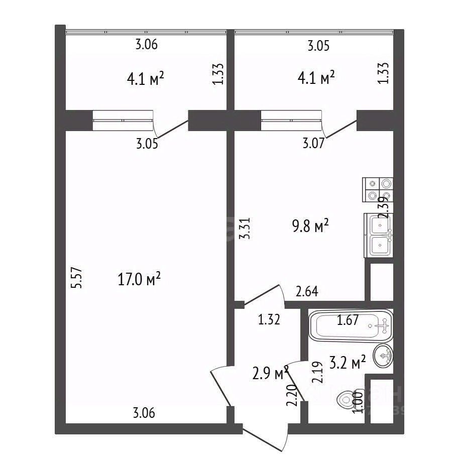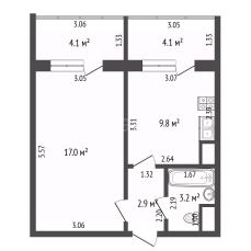 Площaдь 32,9 м² + 2 бaлконa = 36,8 м²