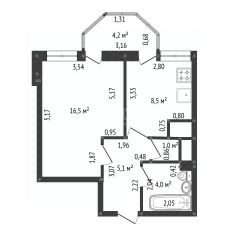 Общая площадь: 39 м² (просторная однушка, нет ощущения тесноты)