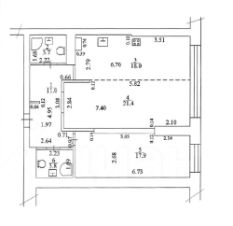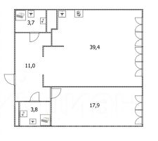 Кухня-гостиная 39,4 кв. м, спальня 18 кв. м.
