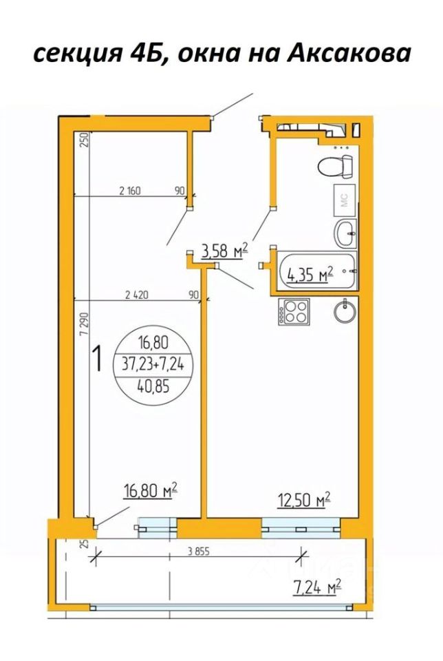 Светлая, просторная, однокомнатная квартира (не апартаменты!) с отличными видовыми характеристиками в историческом центре города (900 м. до нулевого километра!) в ЖК Аксаковский, на 9-м этаже 16-ти этажного современного дома! Функциональная планировка! Общая площадь 40, 85 м2. Окна на ул. Аксакова. Отделка получистовая.