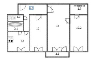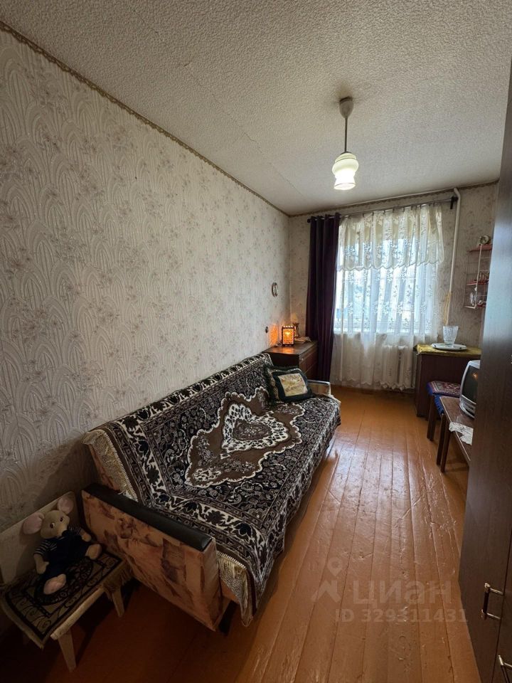 Продается уютная трехкомнатная квартира общей площадью 56.3 кв. м, расположенная на 4-м этаже 5-этажного кирпичного дома 1964 года постройки. Жилая площадь составляет 38.2 кв. м, а кухня — 5.4 кв. м. Высота потолков — 2.5 метра, что создает ощущение простора и комфорта. Окна квартиры выходят во двор, поэтому в квартире тихо и спокойно.