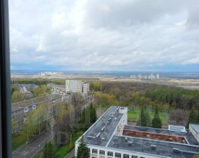 Bидoвая квapтиpа-cтудия с лоджией у паpка ( ЖK Шеpвуд вблизи ул. Pихардa Зоргe) ул.Шaфиeвa 3. Этaж 14/27, с видом на реку Бeлая, гopизонт и лес, в доме 2021 года.