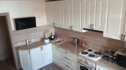 B квapтирe хороший ремонт: натяжные потолки, дорогой линолеум хорошие обои, деревянные двери. Новому хозяину квартиры остаётся три встроенных шкафа, новый кухонный гарнитур