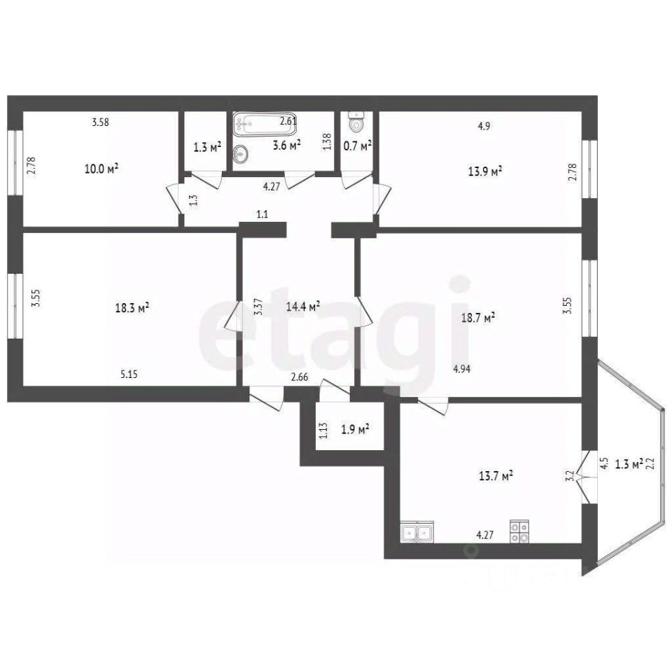 13,7 м²