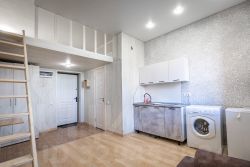 Общая площадь: 19 кв.м. При входе в квартиру, оказываемся в прихожей. Прямо проходим в зал, удобный для отдыха и приема гостей. В кухонной зоне установлен кухонный гарнитур и бытовая техника.