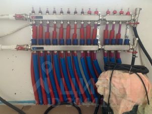Отопление электрическое по полу, сшитый полипропилен (13 контуров), котел электрический на 12кВт