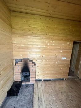 Баня, изнутри полностью обшита евро вагонкой, печь на дровах, парилка отделена от моечной .