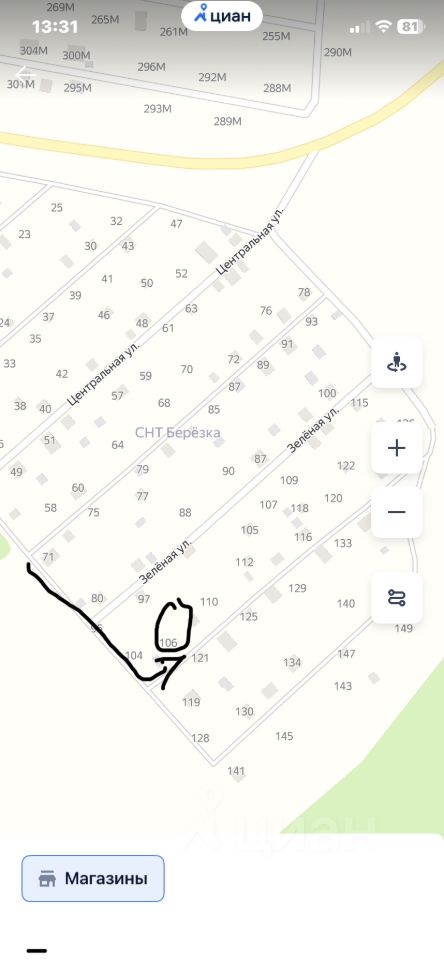 СНТ Березка, рядом с Булгаково, на машине 5 мин. 8,54. Участок106, удобное месторасположение, второй от угла , см фото.