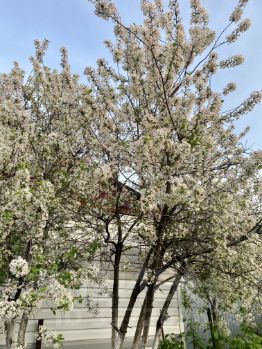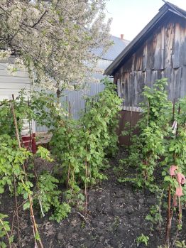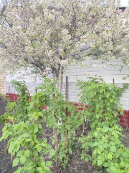 Во дворе многолетние насаждения,яблони и вишни