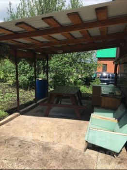 Участок правильной формы, ровный (продажа по членской книжке, приватизация возможна, у нас не было необходимости). На участке двухэтажный дом 4х7, первый этаж шлакоблок, второй 1 комната- бревенчатый сруб. 2-щитовая. На первом этаже хозблок, небольшая баня и кухня. На втором этаже расположены две комнаты, в одной из них установлена дровяная печка для отопления. Также имеются терраса для отдыха, поликарбонатная теплица, место для стоянок автомобилей, скважина.