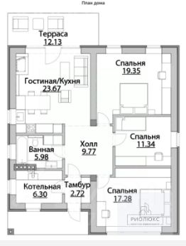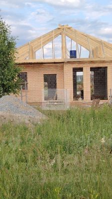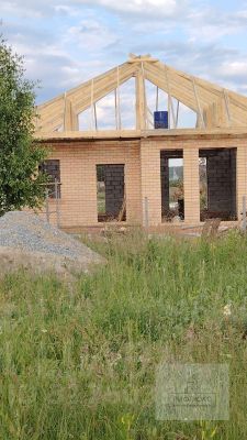 На участке расположен недостроенный дом площадью 96 кв.м. Стены выполнены из керамзитоблока с толщиной 500 мм и утеплены пенобетоном. Фасад облицован кирпичом, что придает дому привлекательный внешний вид. Внутри уже установлен теплый пол, а также проведен газ.