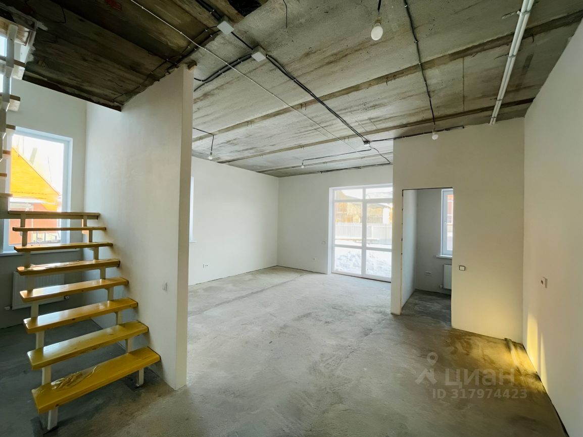 Стены выровнены под покраску или обои, откосы, подоконники, стандартные дверные проемы, межкомнатные перегородки, выведены вентиляция и вытяжки (отдельно 2 шахты), удобная и надежная лестница на металлическом каркасе.Первый этаж: хол с нишей для шкафа-купе, санузел, кухня-гостиная, комната, котельная;