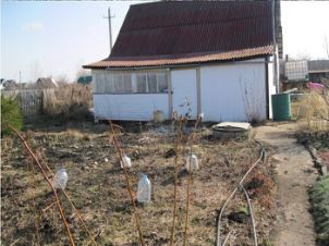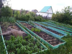 В 30 км от Уфы, около дер. Старые Камышлы, в СНТ Аккош продаётся садовый участок с двумя бревенчатыми однокомнатными домами за 995 тыс руб., 12,5 соток оформлены в собственность, 1 владелец, кадастр.N 02:36:140701:1010. Возможна продажа одного дома с участком 6 соток и баней отдельно за 500 тыс руб.На участке: два бревенчатых однокомнатных дома с верандами и чердаками, 1 кладовка. Расположены вдалеке друг от друга (раньше это были отдельные участки с домами). Комнаты по  20-23 кв.м, на полу линолеум, одна комната недавно обшита светлой вагонкой, в другой бревенчатые стены. В одном доме слив воды выведен наружу. Около  одного из домов - баня с предбанником, внутри вся обшита, частично - липой. Везде подведено электричество,  в домах - 2 отдельных электросчетчика. На участке при въезде стоит отдельный металлический стандартный гараж, рядом -  дополнительное место для 4-х машин. Дорожки по участку зацементированы. Есть 2 большие теплицы рядом с которыми две однокубовые ёмкости на высоких сваренных из металла постаментах для воды (можно использовать как кладовку, душ). От ёмкостей идут шланги к колодцу (всегда есть вода, в т.ч. в засушливые годы). Построены 11 больших тёплых грядок. Растут все необходимые плодовые деревья, кустарники, ягоды, есть цветы и декаративные насаждения. До дачи ходит автобус из Уфы, остановка рядом, дорога - новый асфальт, можно ездить круглогодично, хорошие соседи. Рядом озеро Ильмурзино с парком, охотничьи угодья, рыбалка, грибы (в посадках грузди, рядовки), аэродром малой авиации (Первушино). Участок не затапливаемый, дачный сезон открываем с апреля, отапливаем в холода радиаторами.