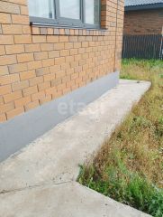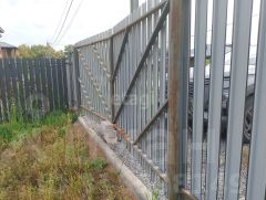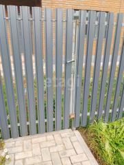 Забор, калитка, ворота, отмостка, дорожка, выполнены в едином стиле.