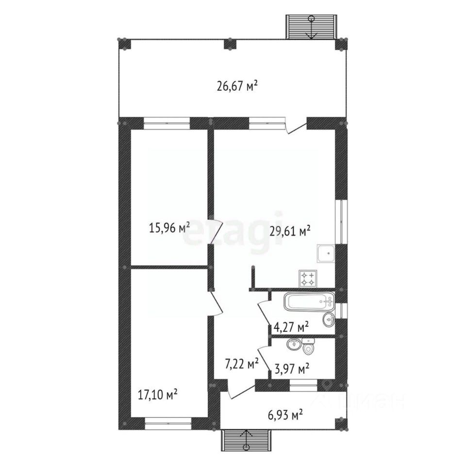 Две спальные комнаты - 17,1 м2,15,96 м2.
