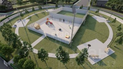 Участок огорожен забором. На каждом доме уличное освещение (светильники)