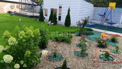 Имеется гараж, баня 4х7, беседка, мангальная зона, лобное место, детская зона, участок с ландшафтным дизайном с насаждениями, ухоженный газон.