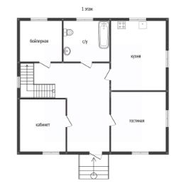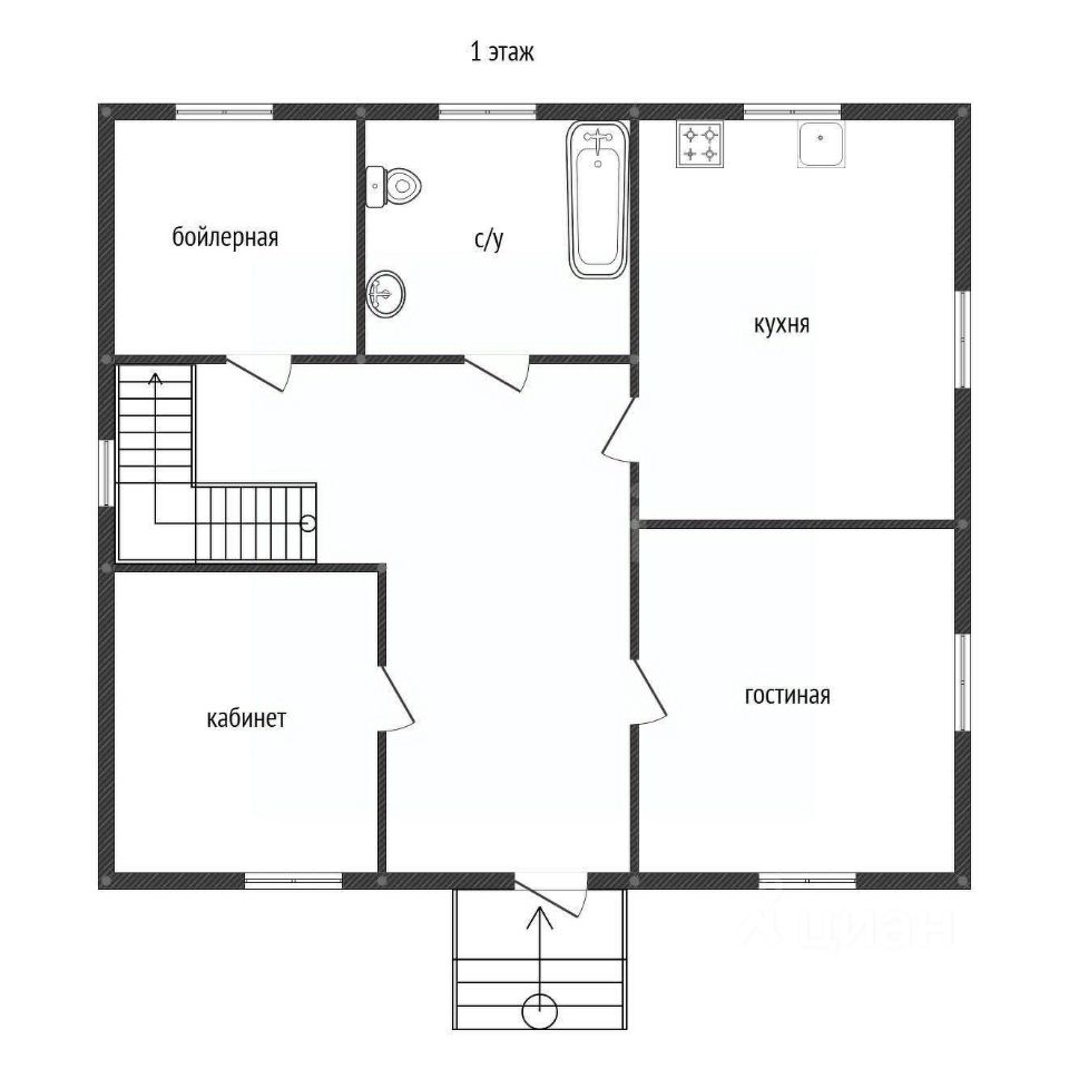 1 этаж - просторная кухня с большой обеденной зоной, отдельная гостиная, кабинет, ванная комната, бойлерная, дополнительный выход на задний двор с коридора.