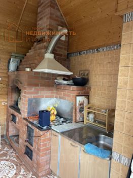 На территории участка есть отдельное помещение с мангальной зоной, крытая зона отдыха, дровяник, теплица.