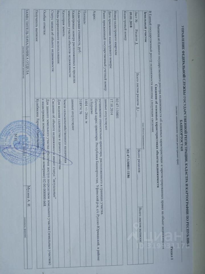 Кадастровый номер участка 02:47:130801:*** указал продавец